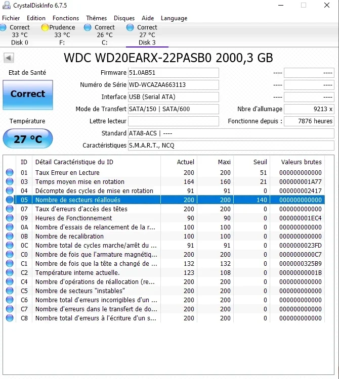 DISQUE DUR 3.5 SATA formaté et en parfait état de fonctionnement ,