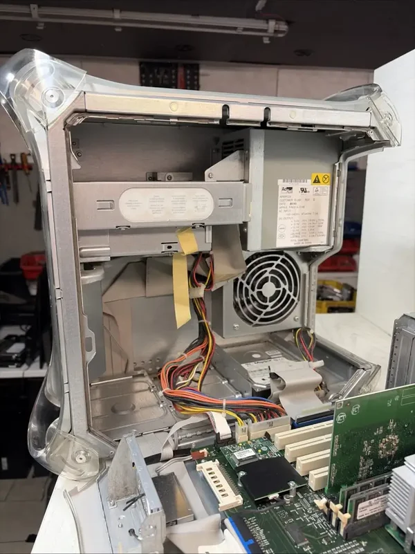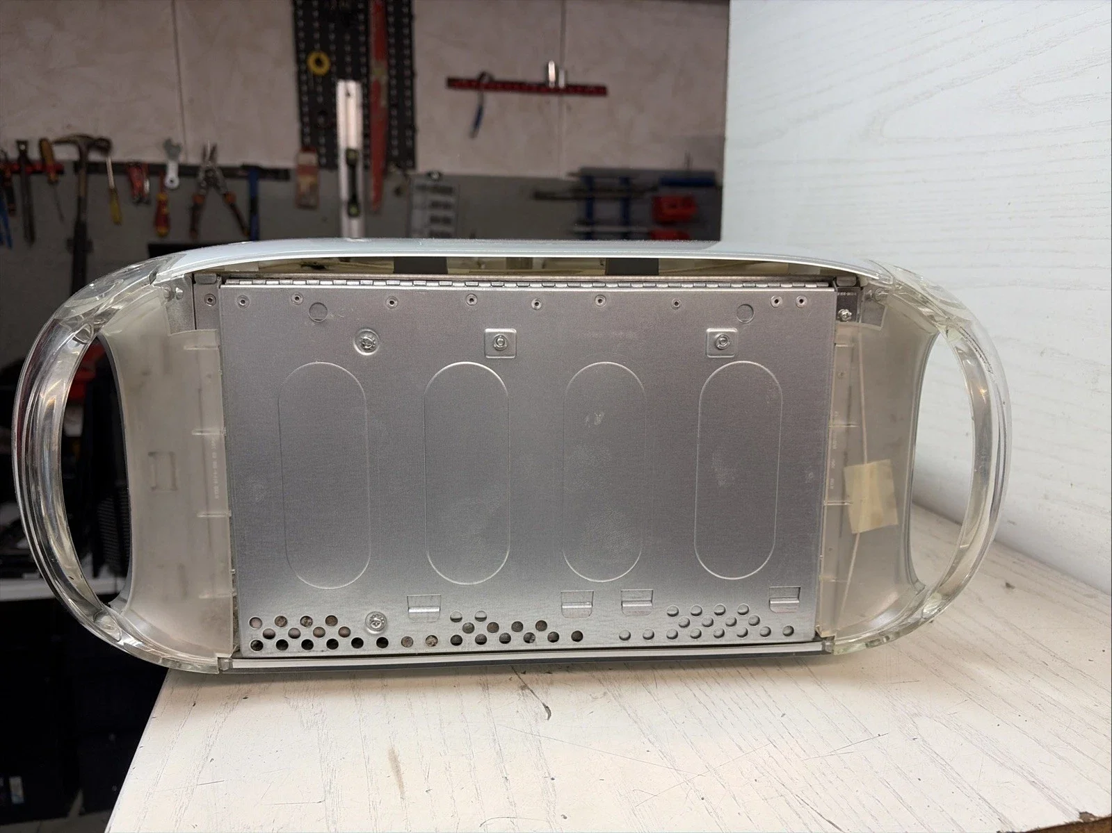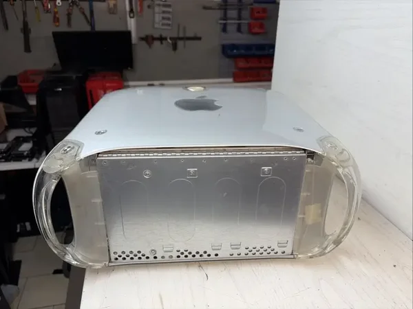 Le Power Mac G4 Quicksilver est un ordinateur emblématique lancé par Apple en 2001. Reconnaissable à son design translucide argenté et ses poignées distinctives, il est devenu une véritable pièce de collection pour les passionnés de rétro-informatique et de produits Apple vintage.