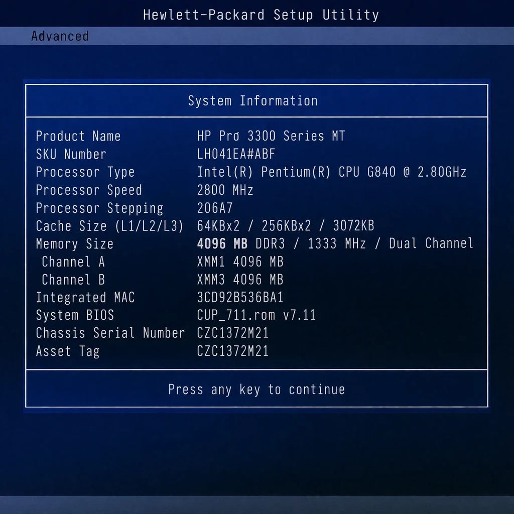 - HP Pro 3300 MT